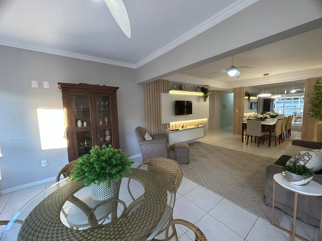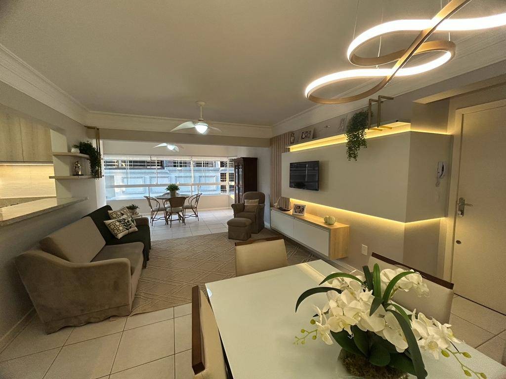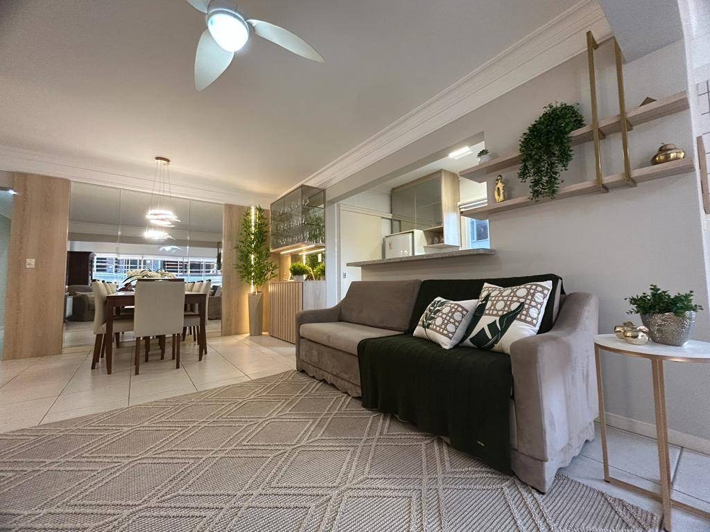 Amplo apartamento finamente mobiliado e decorado, composto por 2 dormitórios, sendo 1 suíte, banho social, amplo living integrado, sacada de frente, cozinha americana, lavanderia, apto frente norte, box para carro. Edifício de esquina a poucos metros do mar e novo calçadão, com hall de entrada decorado, 2 elevadores digitais, portão e porteiro eletrônico, zeladoria permanente.