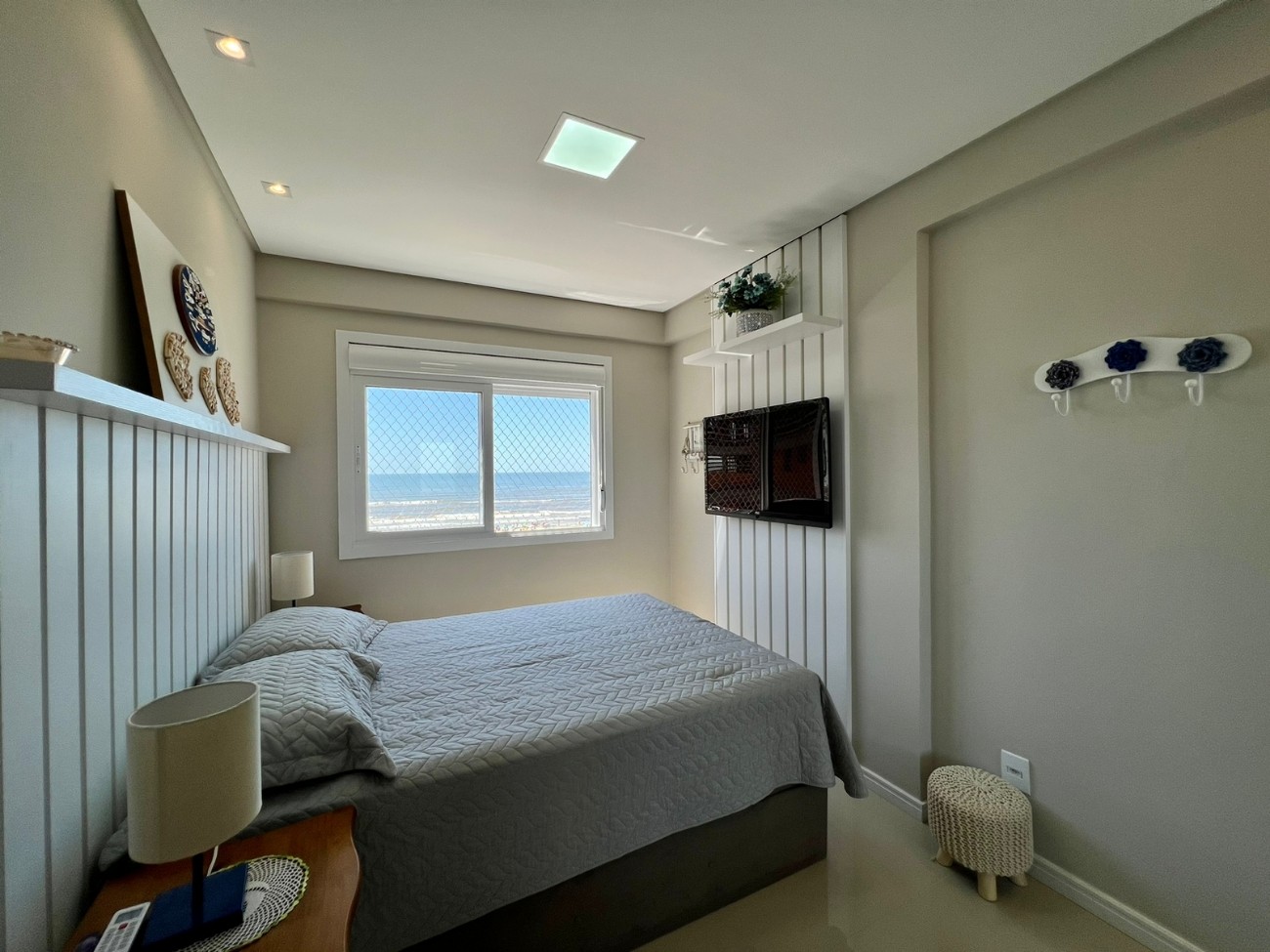 Apartamento dois dormitórios, sendo duas suítes, lavabo, mobiliado e decorado, amplo terraço lateral, com vista pro mar! Com