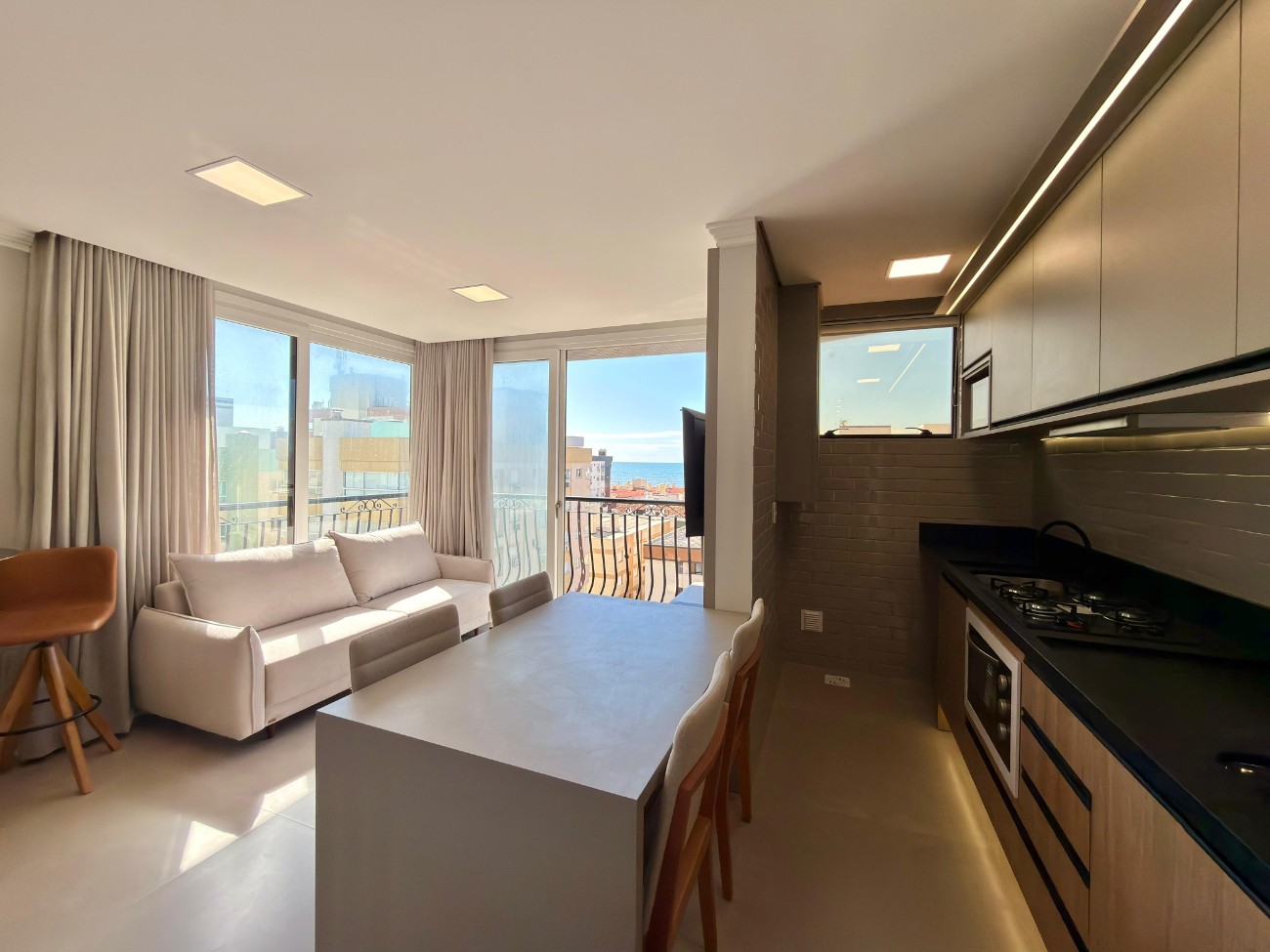 O imóvel conta com duas suítes e lavabo, oferecendo privacidade e funcionalidade na medida certa. O living integra a cozinha americana com churrasqueira, criando um ambiente acolhedor e ideal para receber. Finamente mobiliado e decorado, apresenta acabamentos de qualidade, como esquadrias em pvc, além de posição solar leste norte que proporciona excelente iluminação natural. Conta ainda com uma vaga de garagem.
