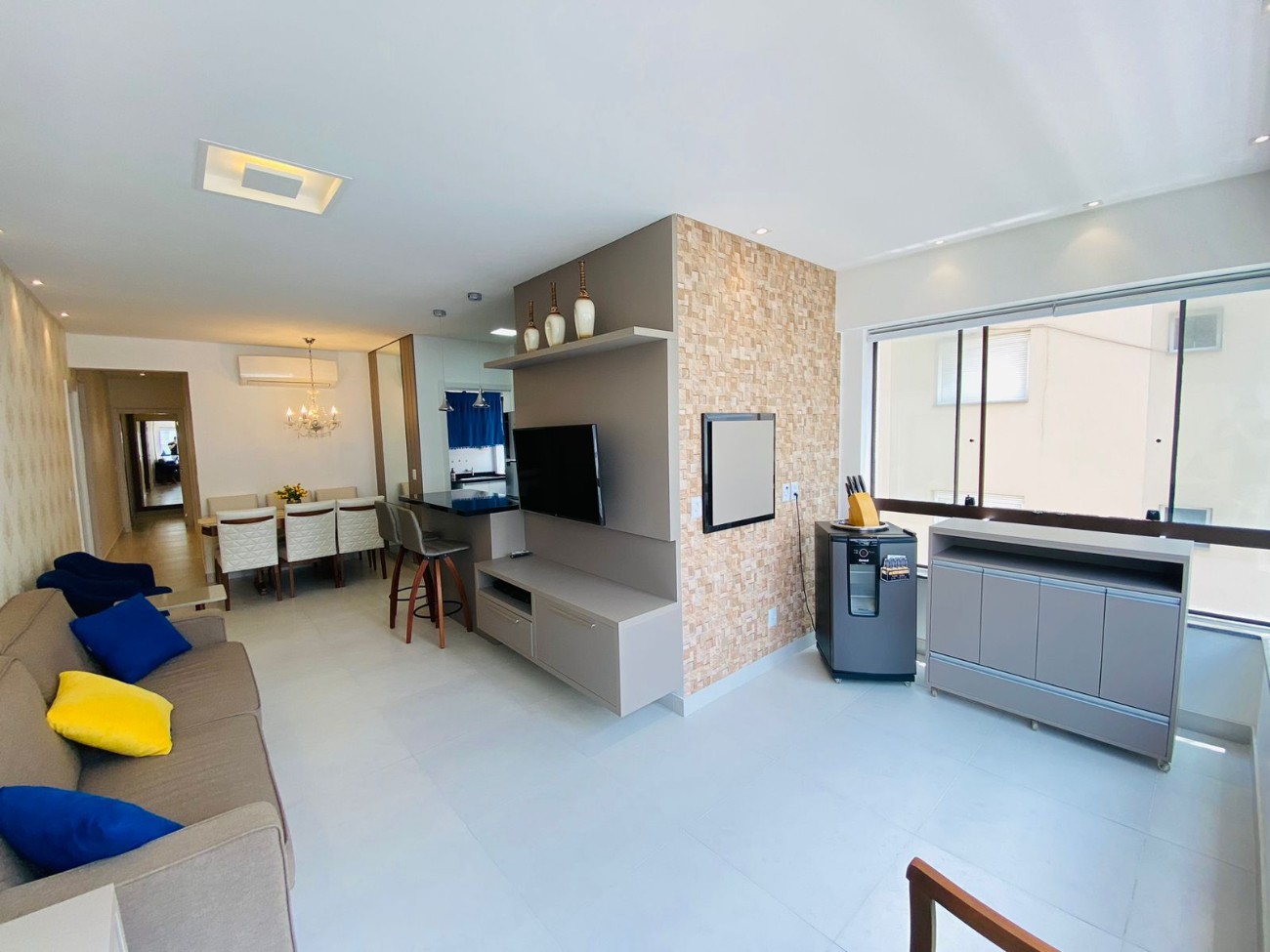 Apartamento 3 suítes no bairro Navegantes em Capão da Canoa, mobiliado e decorado, lavabo, living em 2 ambientes, sacada de frente integrada, cozinha estilo americana, churrasqueira, lavanderia, apto bem iluminado e ventilado, box para 2 carros. Edifício de alto padrão com hall de entrada decorado, 2 elevadores.