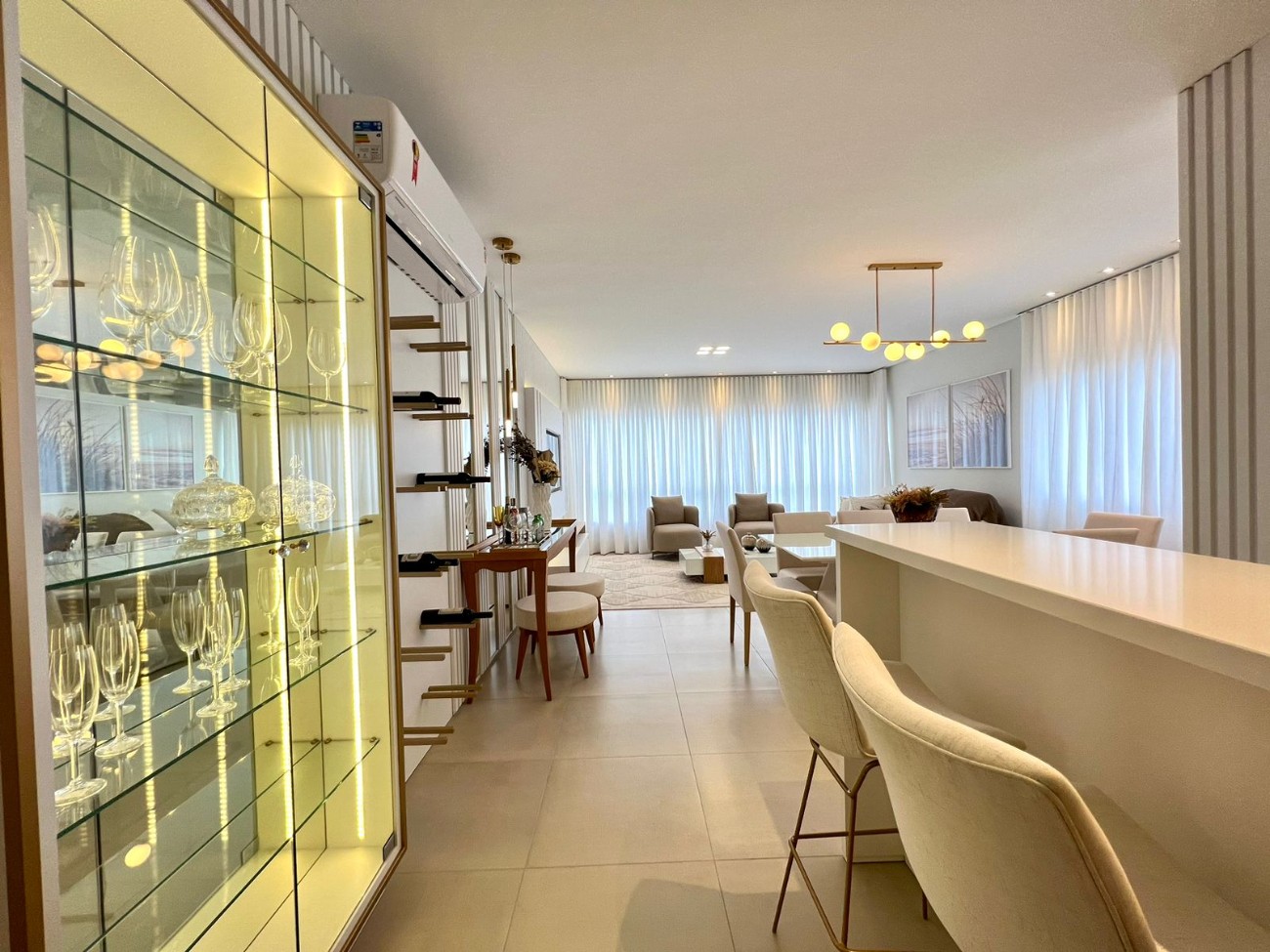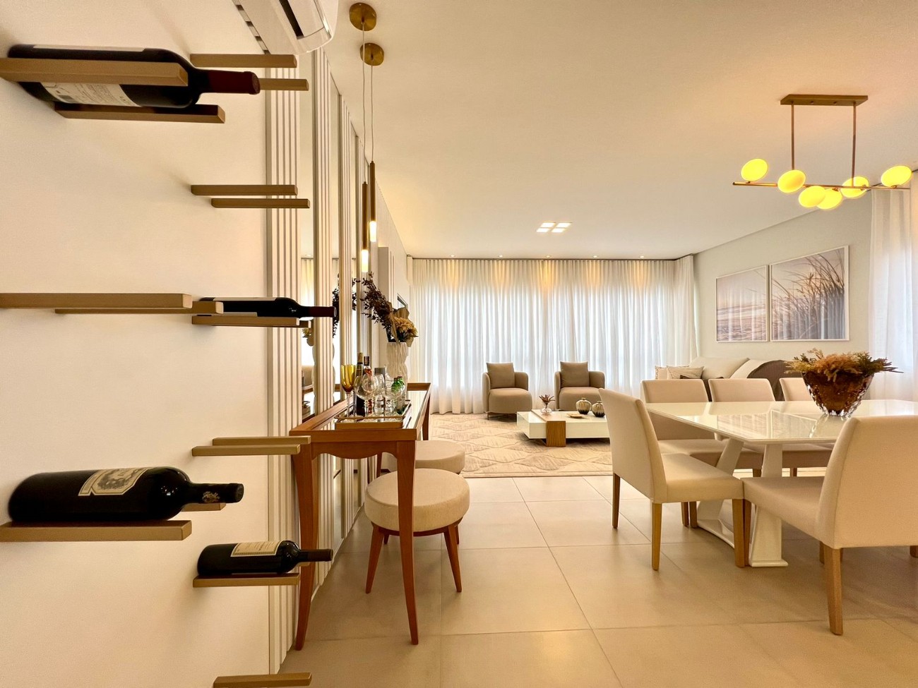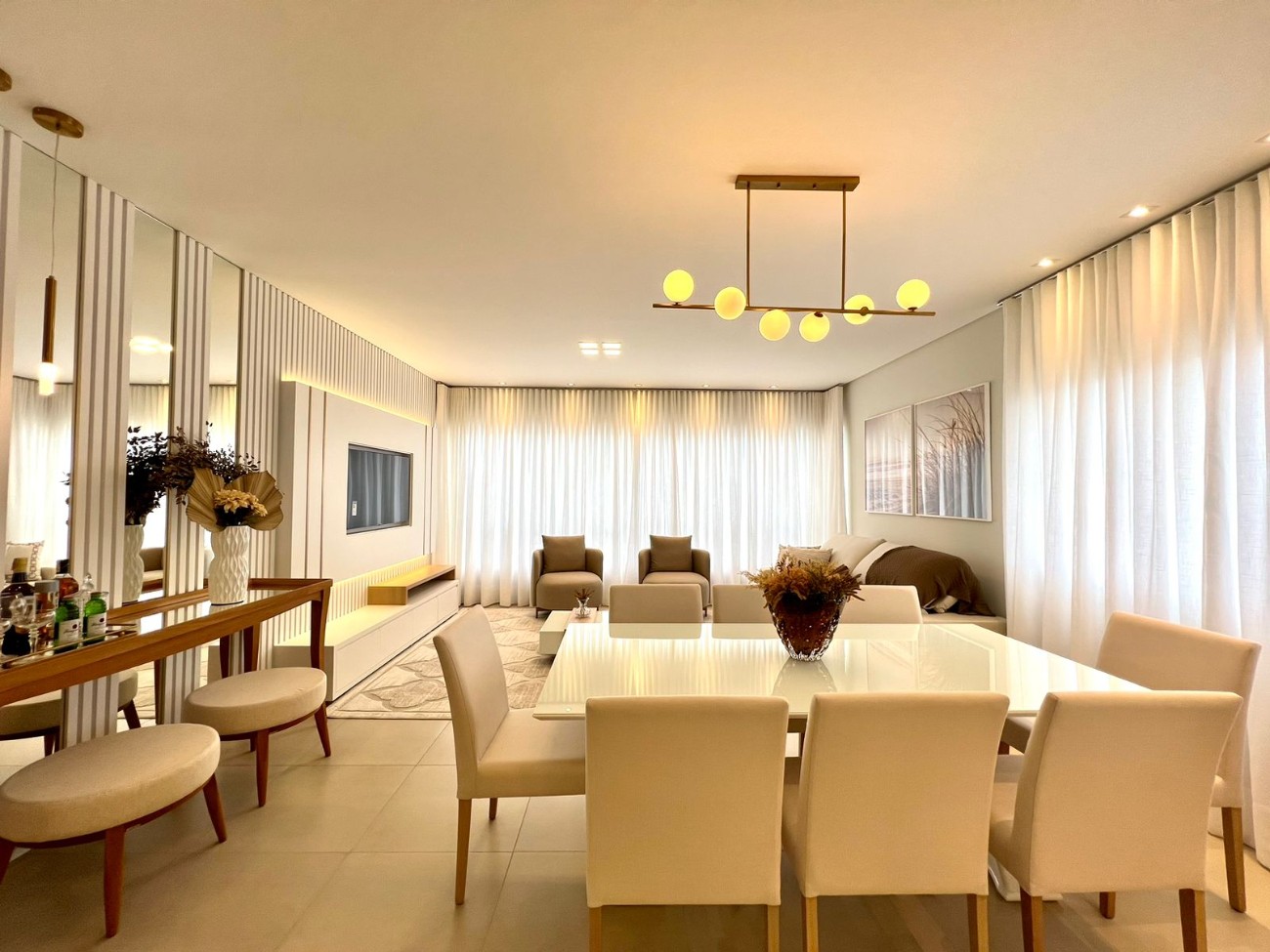 Amplo apartamento de 3 dormitórios finamente mobiliado e decorado, sendo 1 suíte, banho social e lavabo, amplo living em 2 ambientes, sacada de frente integrada, cozinha americana, lavanderia, apto bem iluminado e ventilado, 2 box para carro. Edifício de altíssimo padrão construtivo com toda infraestrutura.