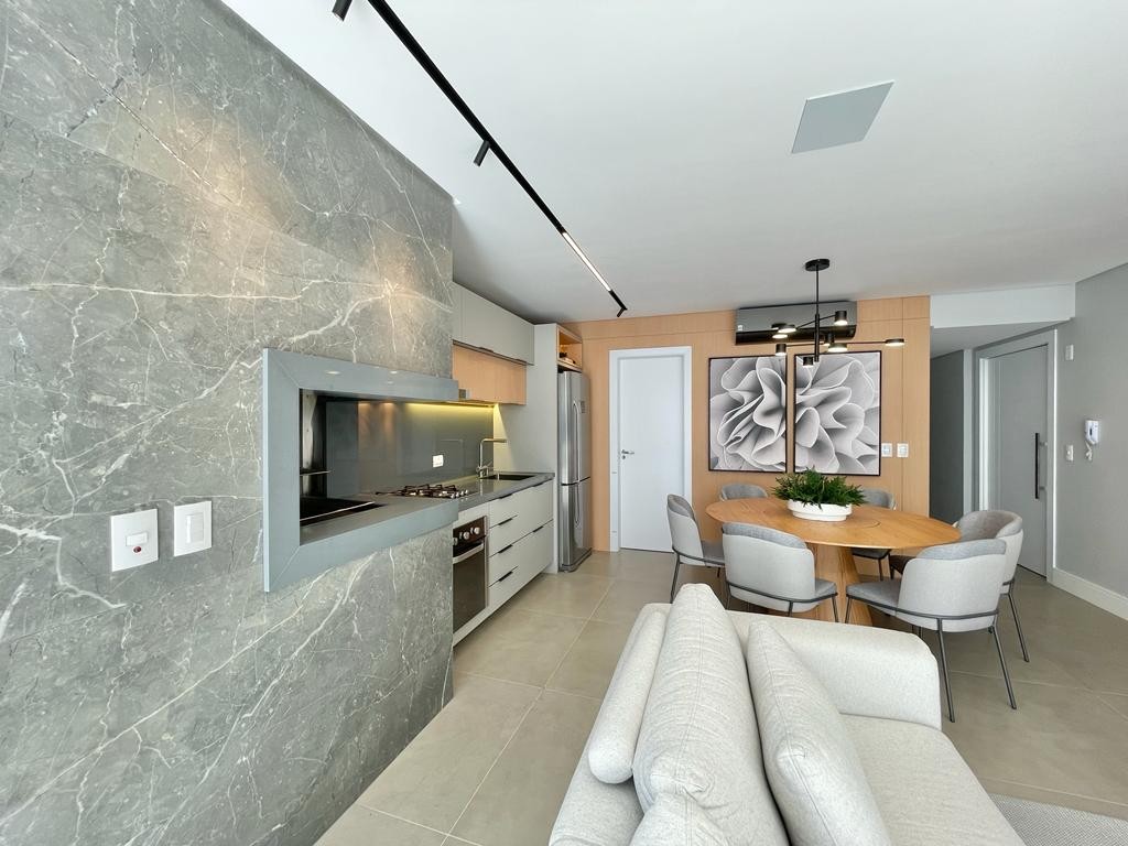 Apartamento finamente mobiliado e decorado, composto por 3 suítes + Lavabo, terraço de frente no formato L, 202 m2 de área privativa (só apto), móveis fixos e soltos de alto padrão, eletrodomésticos (melhores marcas), living com cortinas motorizadas, living com TV 65´ OLED e Home Theather Yamaha 5.1 canais, churrasqueira com grelha motorizada, pedras todas em Quartzo (silestone), ar condicionado em todos ambientes, lavabo com pia esculpida, estilo bebedor), revestimento churrasqueira em porcelanato 120x260cm, piso em porcelanato 90x90cm (Living e terraço), piso vinílico Duratex nas suítes e Lavabo, 100% rebaixado em gesso, agua quente em todos pontos, luminárias em LED e de alto padrão, 2 box para carro. Edifício com hall de entrada decorado, elevador, portão e porteiro eletrônico, zeladoria permanente.