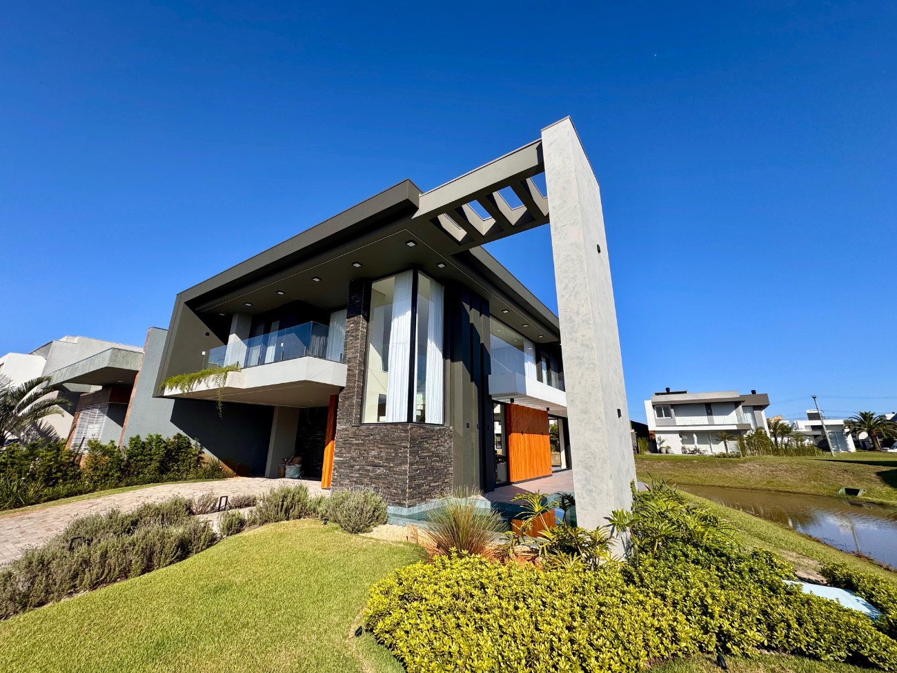 Sobrado na beira do lago no condominio Capão Ilhas Resort, composto por 5 suítes, lavabo, amplo living em 3 ambientes, lareira, cozinha americana, lavanderia, sobrado finamente mobiliado e decorado, espaço para 2 carros...