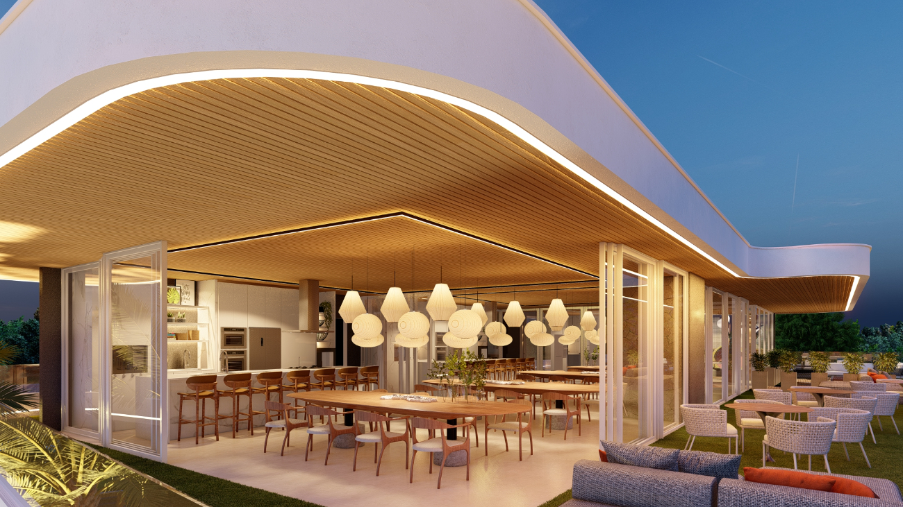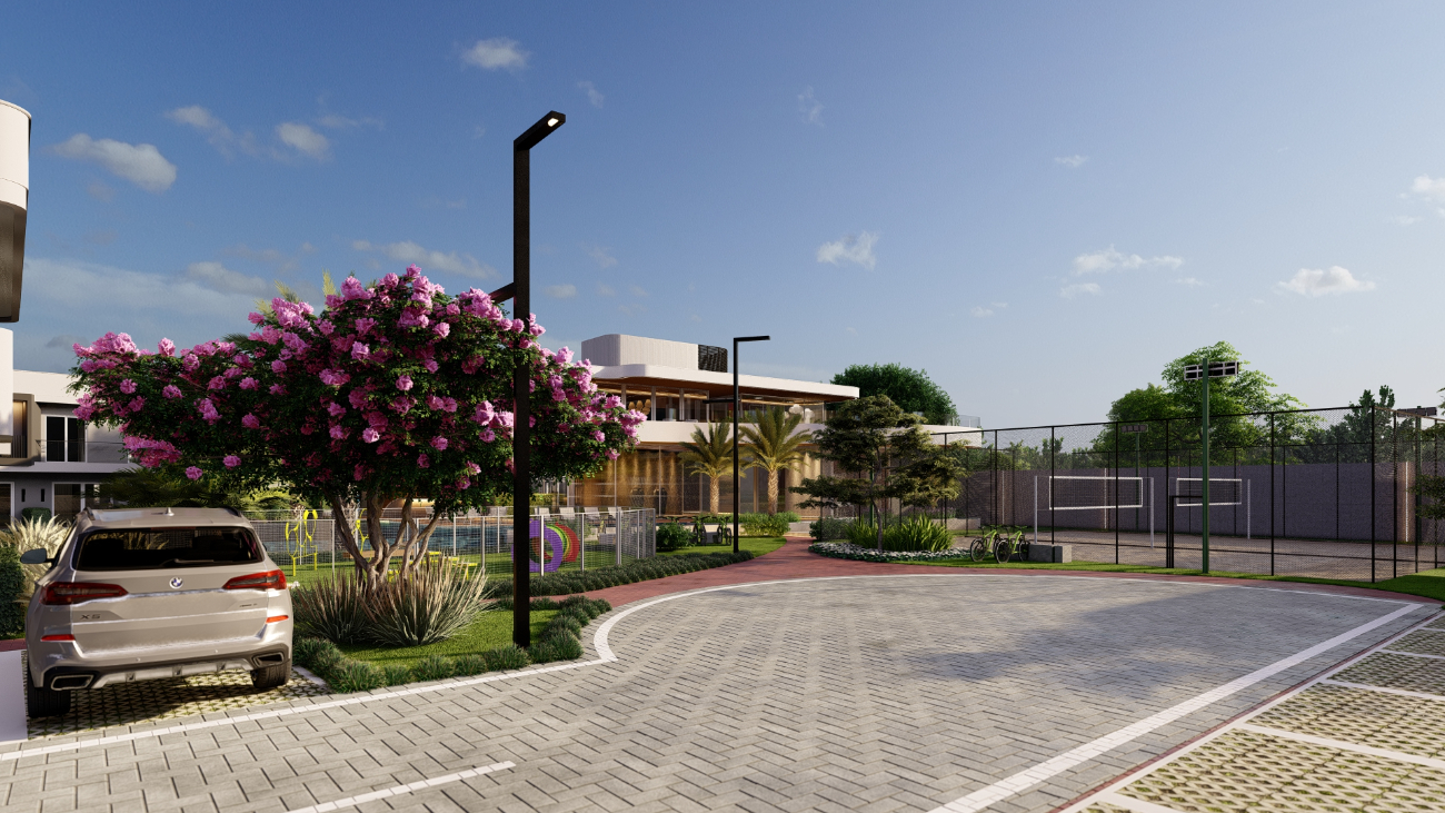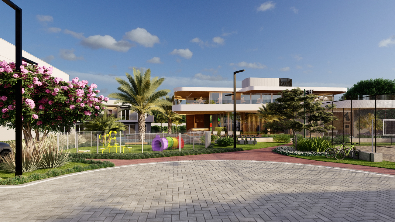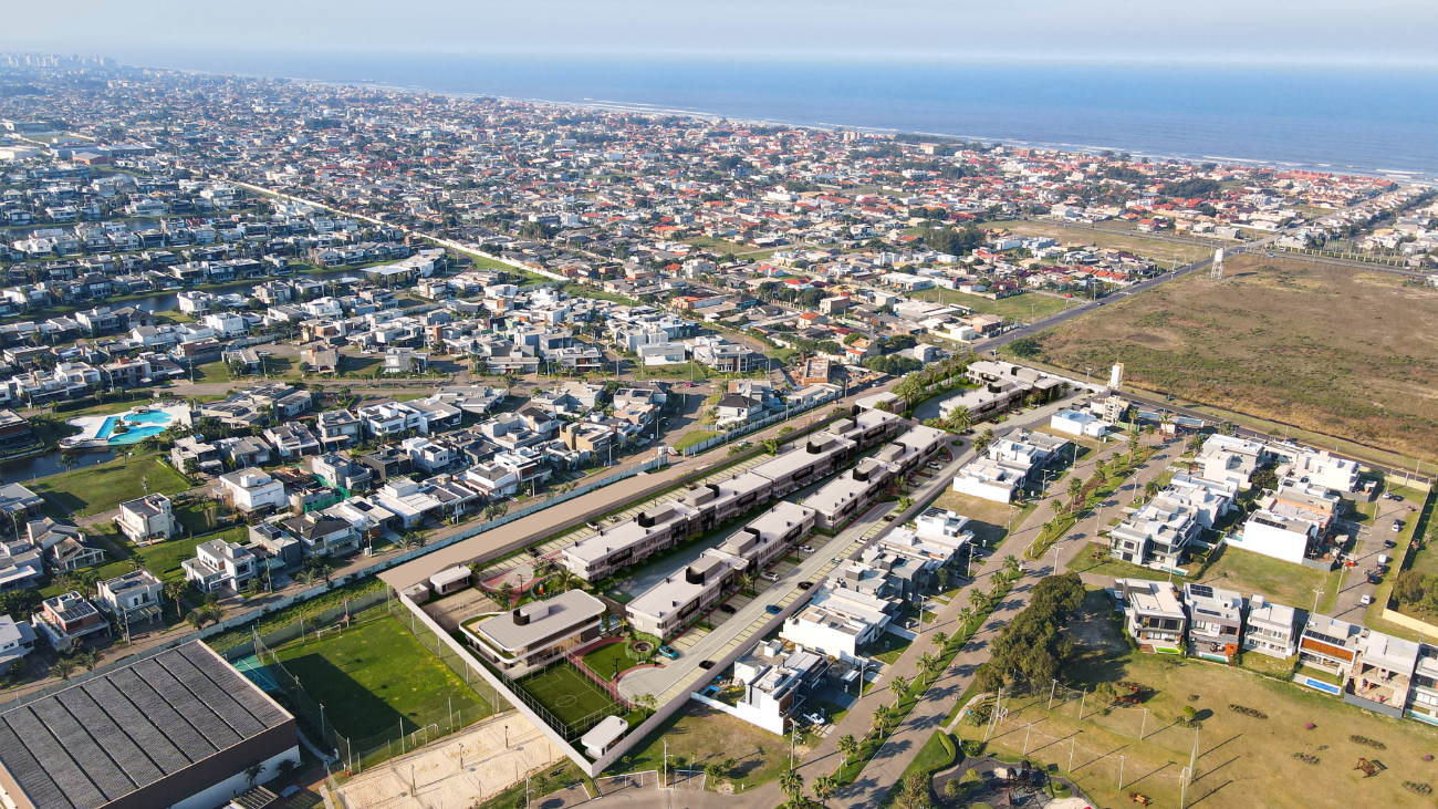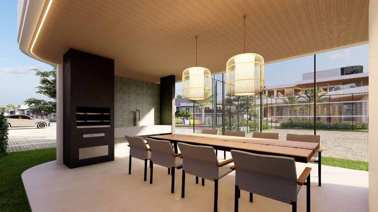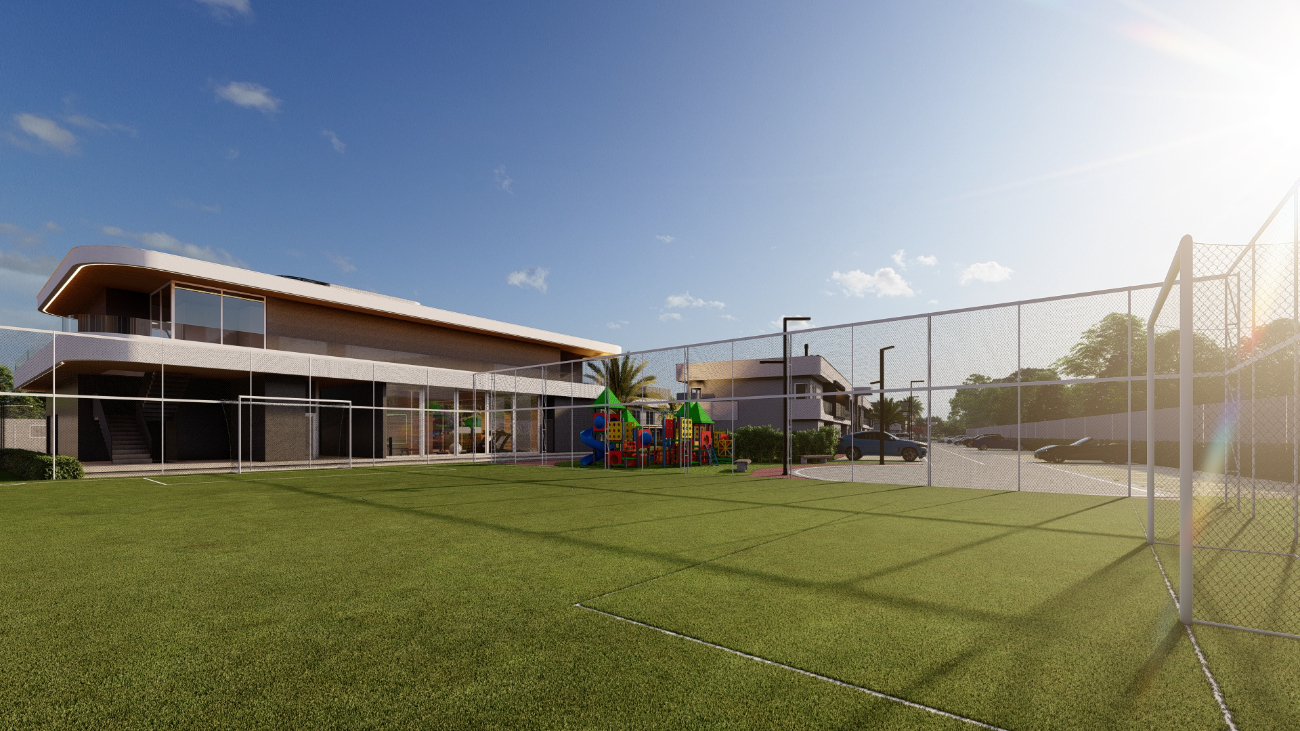 Portaria com guarita blindada e controle de acesso de automóveis e pedestres, Design contemporâneo com ar tropical, Clube House, Espaço gourmet, Espaço kids, Academia, Piscina com borda infinita e praia artificial, Piscina coberta aquecida, Estar com lareira externa, Quadra de beach tênis, Espaço pet, Parque infantil, Campo de futebol.