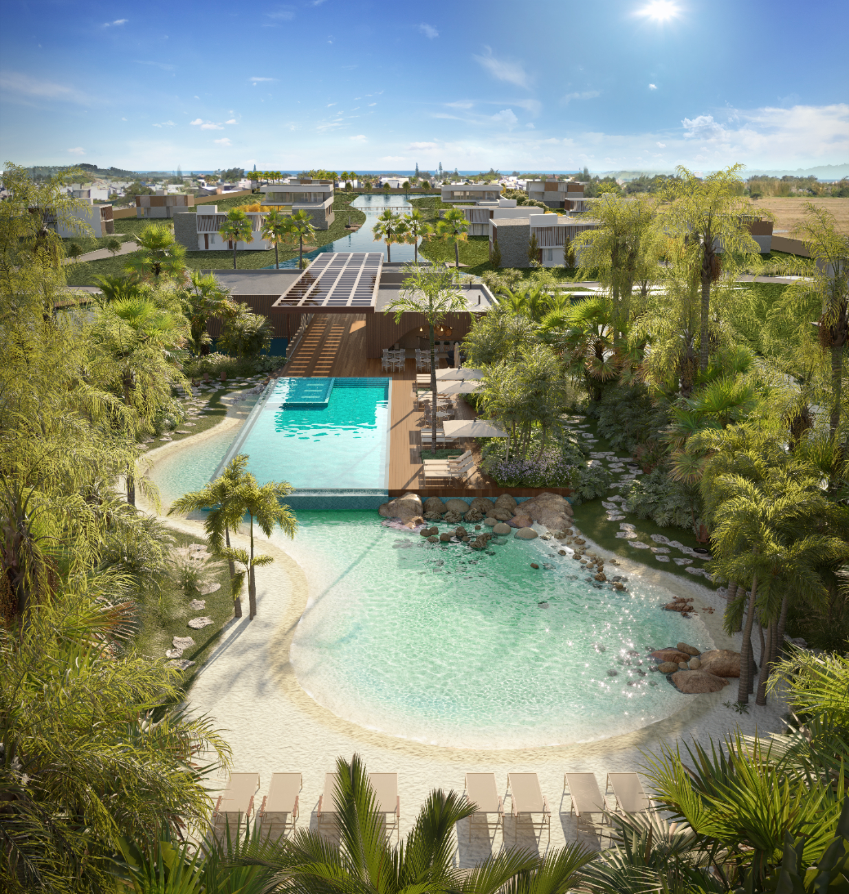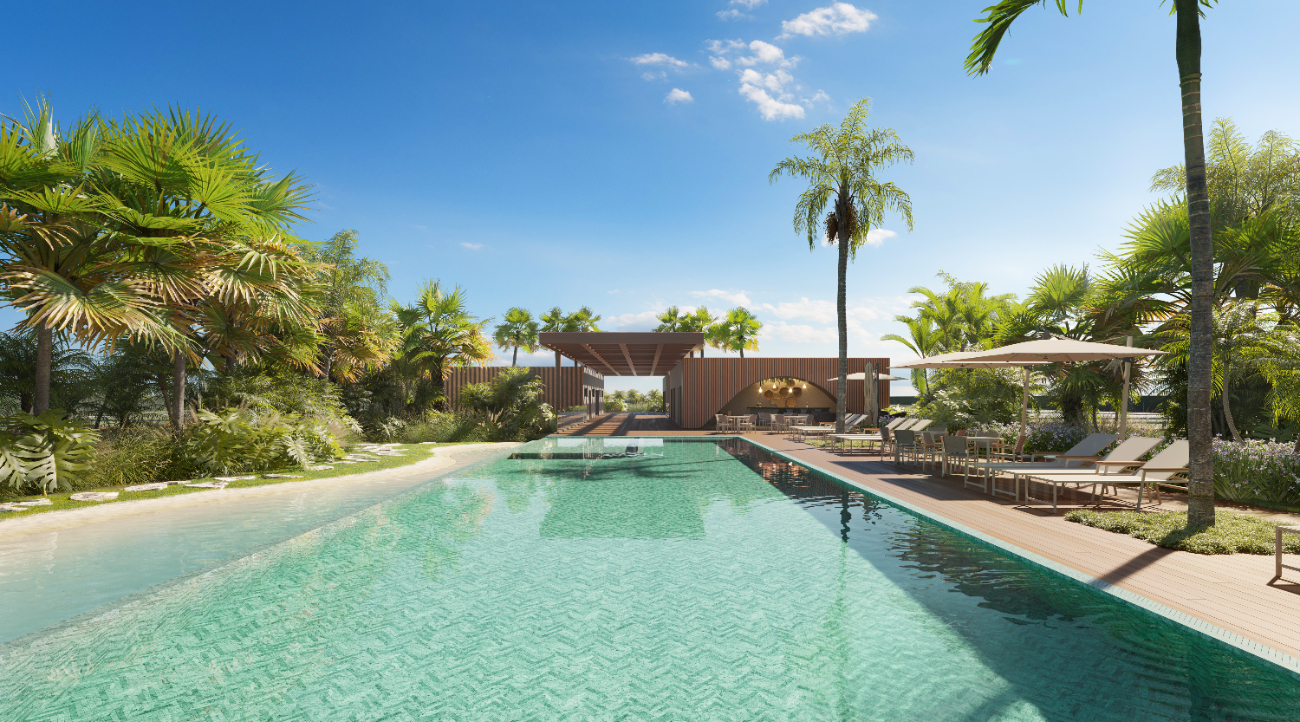 Piscina externa com borda infinita, Piscina infantil, Piscina fechada climatizada, praia Tropical com piscina natural, Acquabar com Solarium, Espaços Gourmet Integráveis, Estares em meio ao paisagismo, Academia, Quadra de futebol 7, 3 quadras de beach tennis, Quadra de pickleball, Quadra de tênis coberta, Parque infantil, Estar/braseiro, Pórtico de acesso monitorado, Controle de acesso com cancelas automotivas e comunicação por interfone, Eclusa de veículos, Guarita blindada, Sala central de monitoramento, Sistema de monitoramento com câmeras, Perímetro fechado com muros de concreto, Cerca elétrica setorizada.