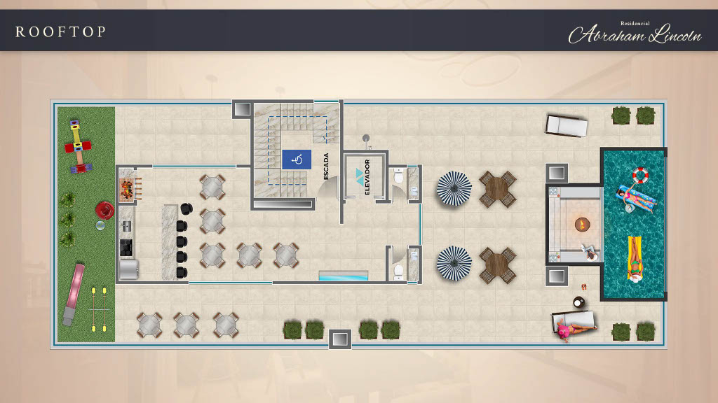 O edifício conta com um hall de entrada imponente e finamente decorado, refletindo o padrão elevado da construtora Pirâmide. No rooftop, o empreendimento oferece uma infraestrutura completa de lazer, com salão de festas, espaço kids, piscina aquecida, espaço zen junto à piscina com lareira externa e uma ampla área de solarium, proporcionando conforto e experiências diferenciadas em todos os momentos.