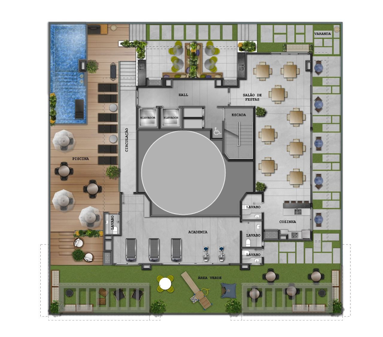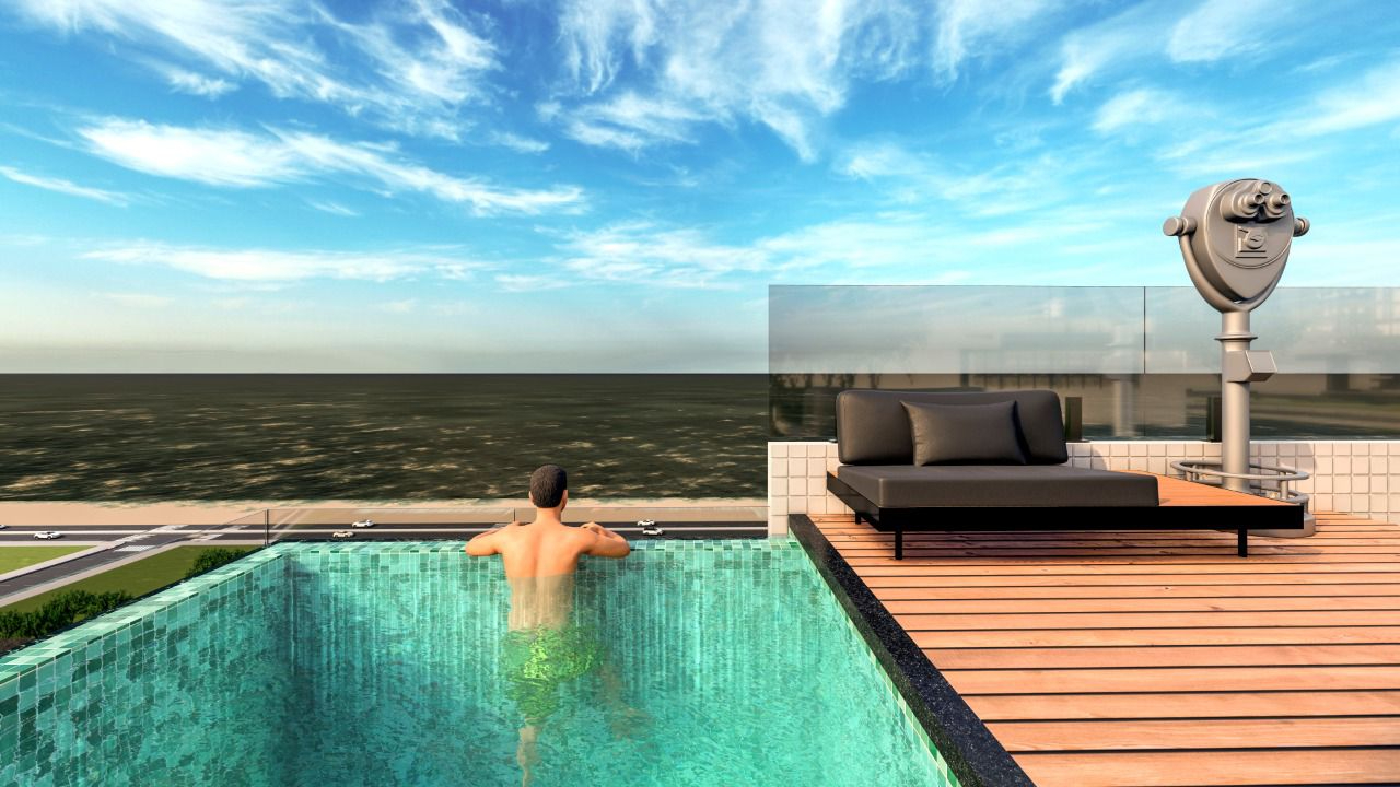 O grande destaque do Anvainer Palace está no rooftop, que entrega uma experiência diferenciada com piscina de borda infinita, criando um ambiente exclusivo com vista privilegiada. O empreendimento conta ainda com salão de festas, playground infantil e espaços de convivência que atendem toda a família, reforçando o conceito de viver com lazer e praticidade em Capão da Canoa.