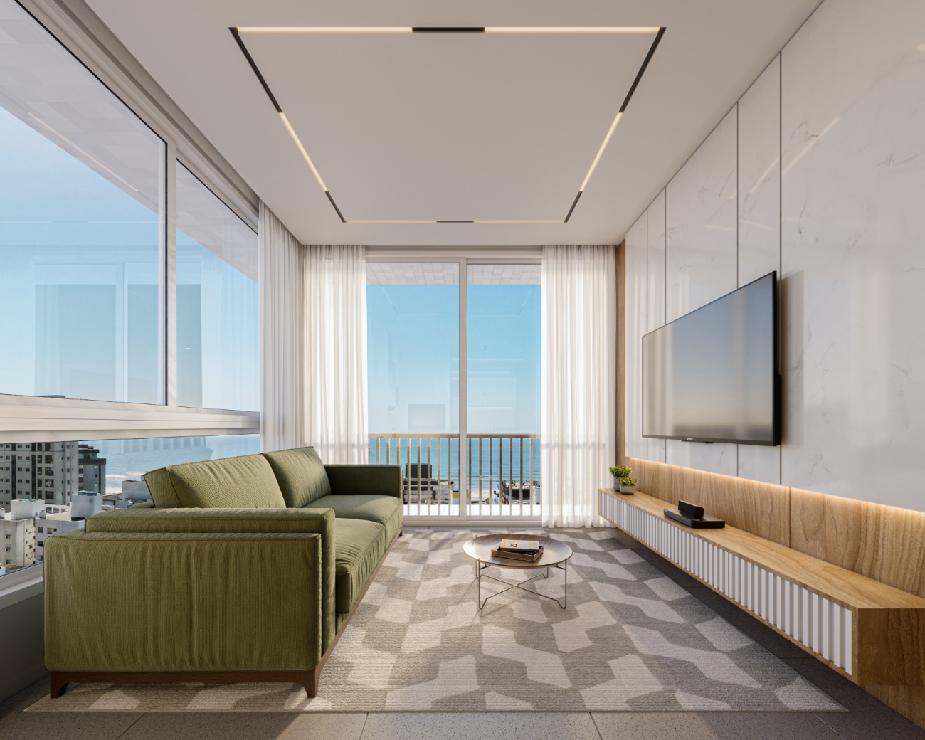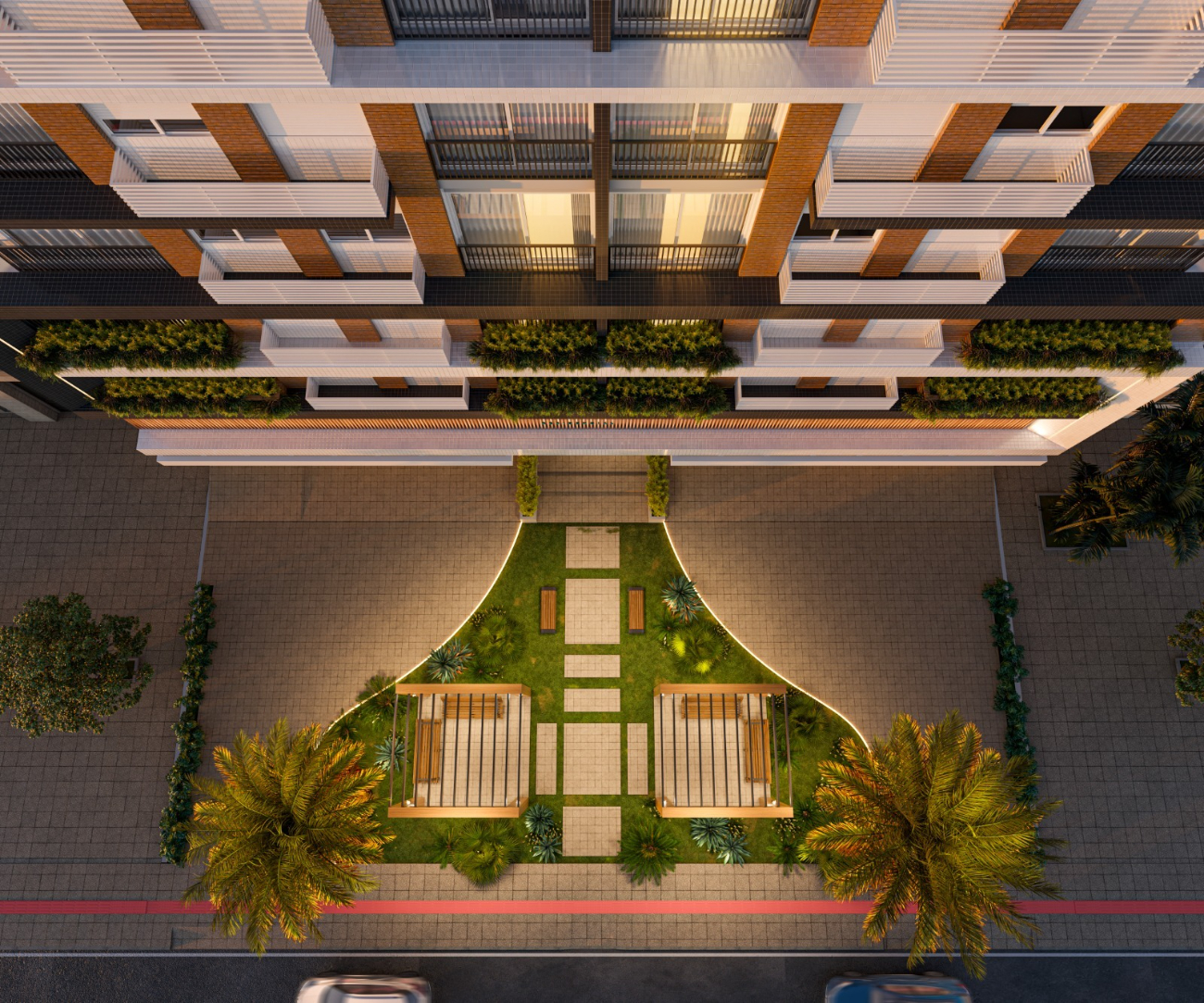 O edifício Bel Giardino em Capão da Canoa RS oferece hall de entrada decorado, áreas comuns mobiliadas, zeladoria permanente, portão e porteiro eletrônico, garantindo segurança e praticidade no dia a dia.