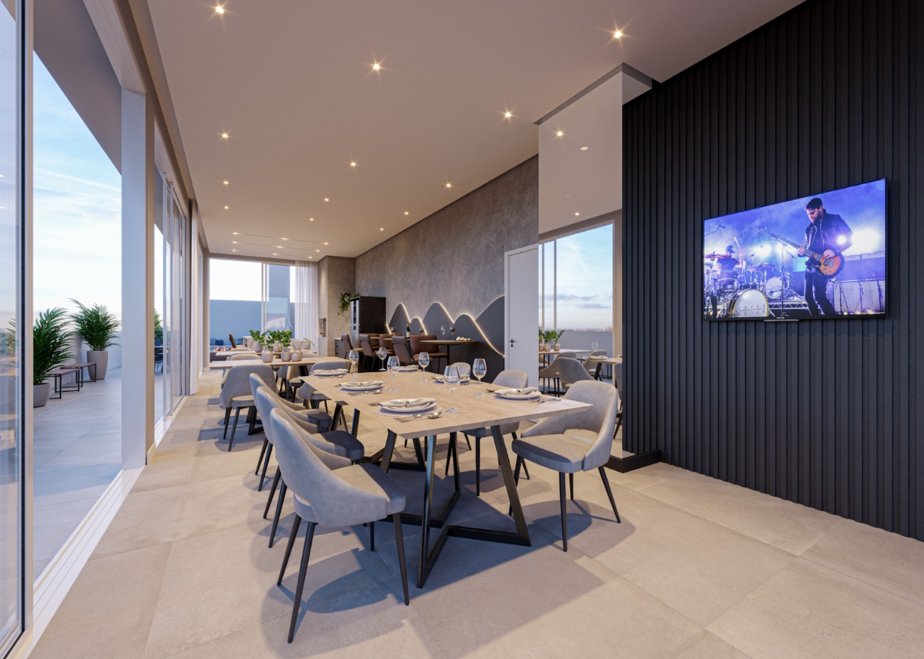 Para quem busca apartamento com infraestrutura completa em Capão da Canoa, o Bel Giardino se destaca pelo rooftop com lazer, incluindo academia, duas piscinas e dois salões de festas, criando um espaço completo para uso durante todo o ano.