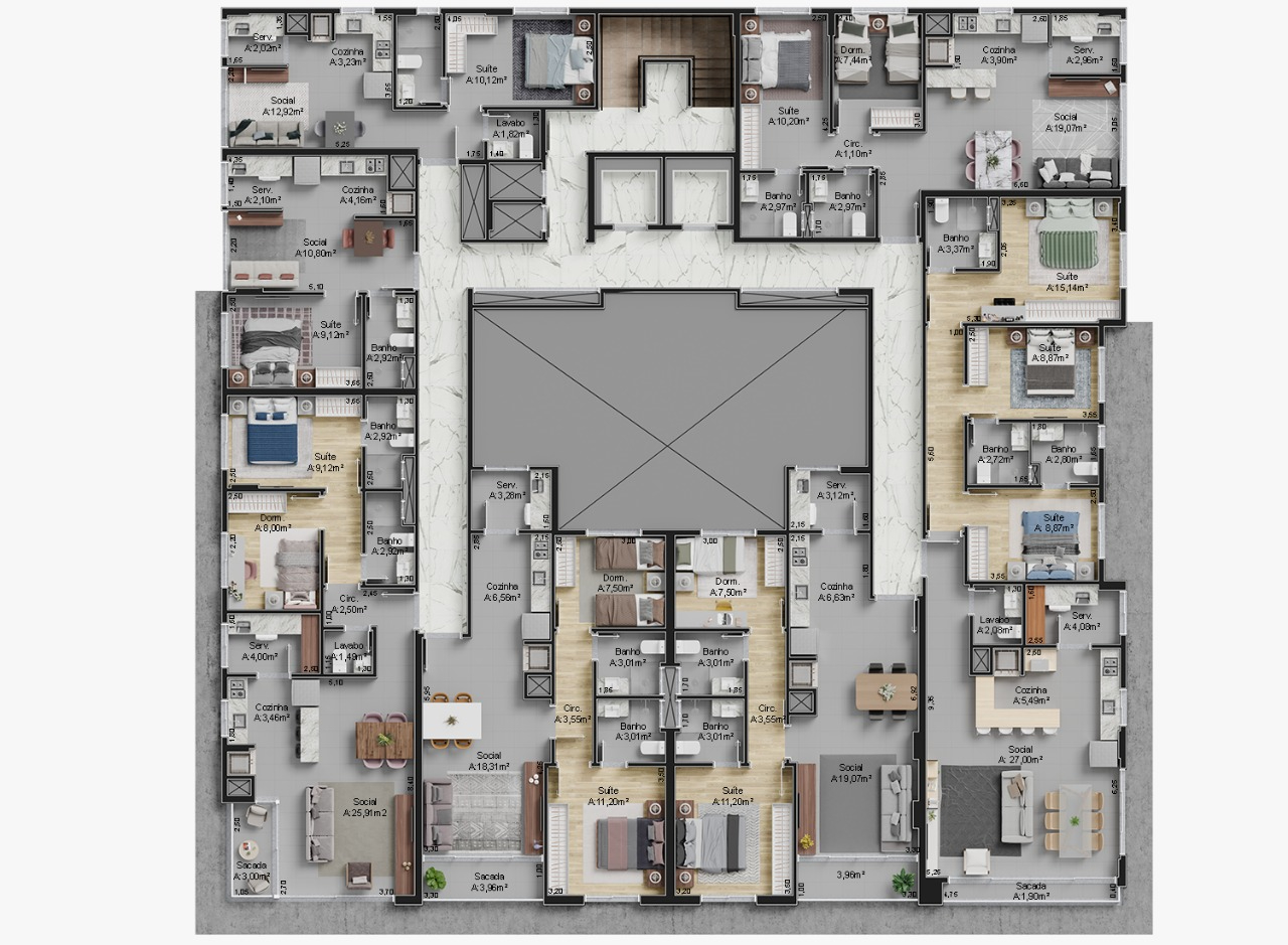 O edifício possui 12 andares, com unidades bem distribuídas, ideal para quem busca apartamento no litoral com conforto, funcionalidade e valorização.