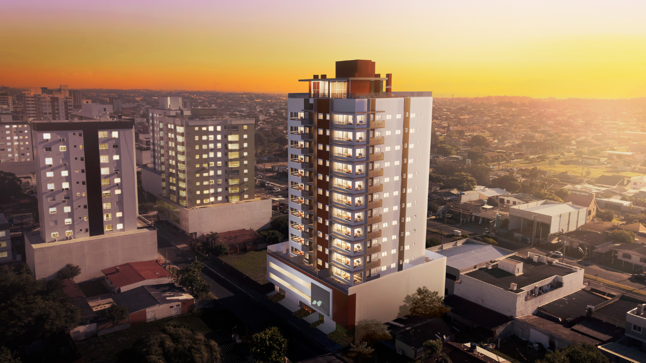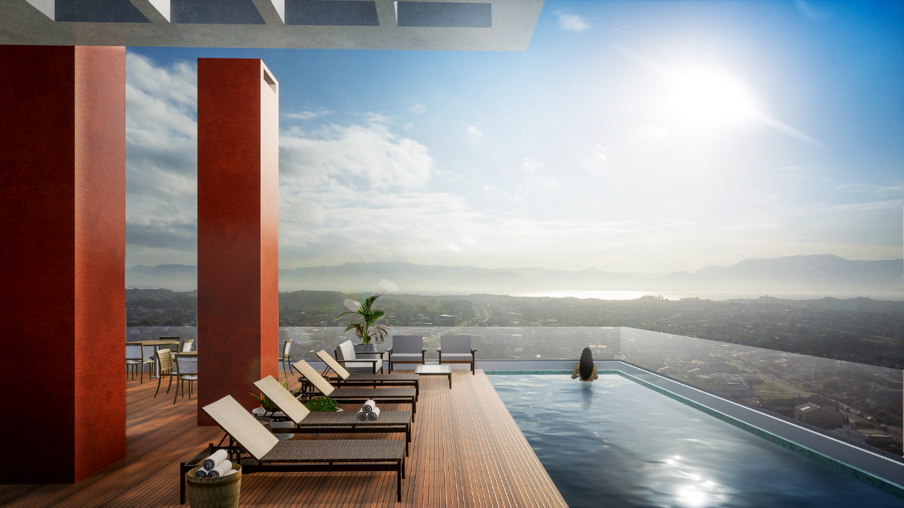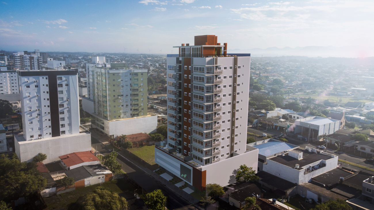 Serão 66 apartamentos com suítes de 01, 02 e 03 dormitórios, rooftop com piscina, academia equipada e salão de festas.