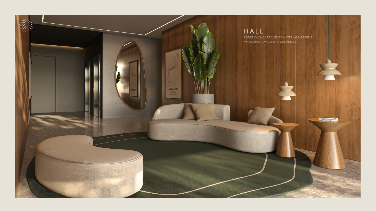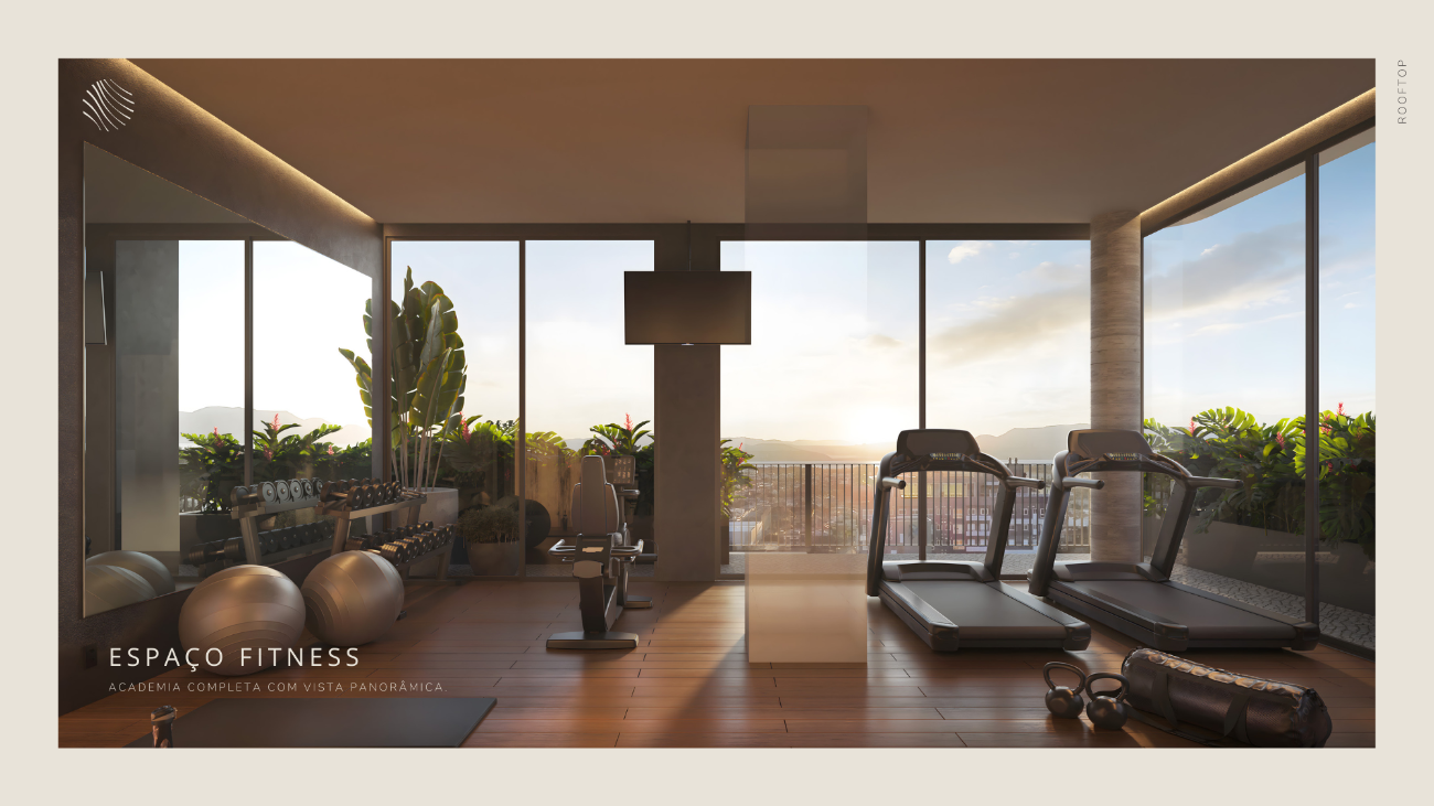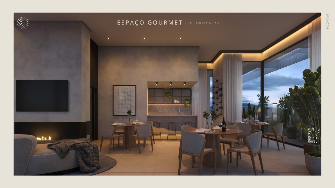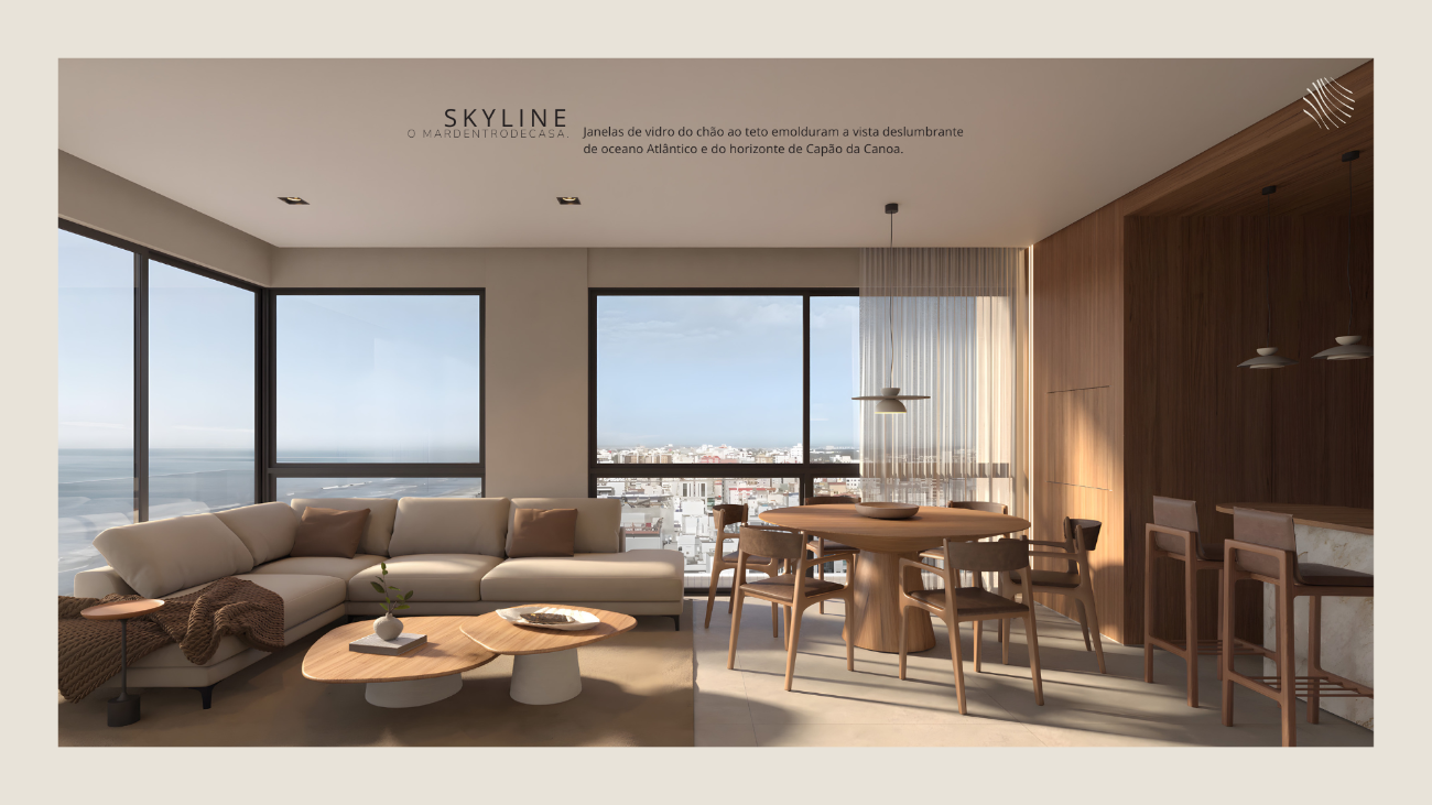 Os detalhes elevam a experiência: esquadrias do piso ao teto que integram luz e paisagem, persianas automatizadas, hall sofisticado, som ambiente e áreas sociais mobiliadas com curadoria contemporânea. Cada elemento reforça a sensação de estar em um refúgio de alto padrão.