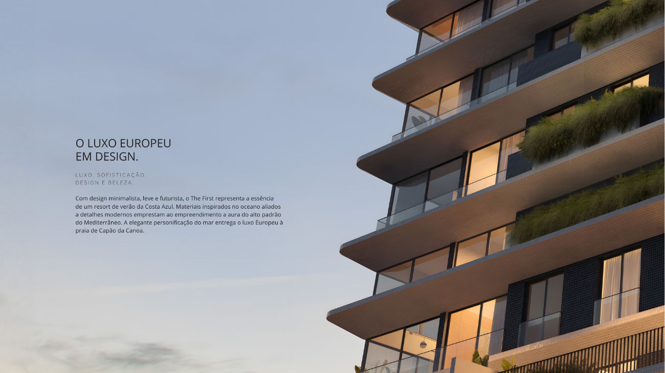 O primeiro empreendimento que apresenta ao litoral gaúcho a estética refinada e o design europeu da riviera francesa, unindo frente mar, elegância e uma atmosfera permanente de exclusividade. A localização privilegiada oferece vista livre e definitiva para o oceano, criando um cenário onde o horizonte acompanha cada momento.