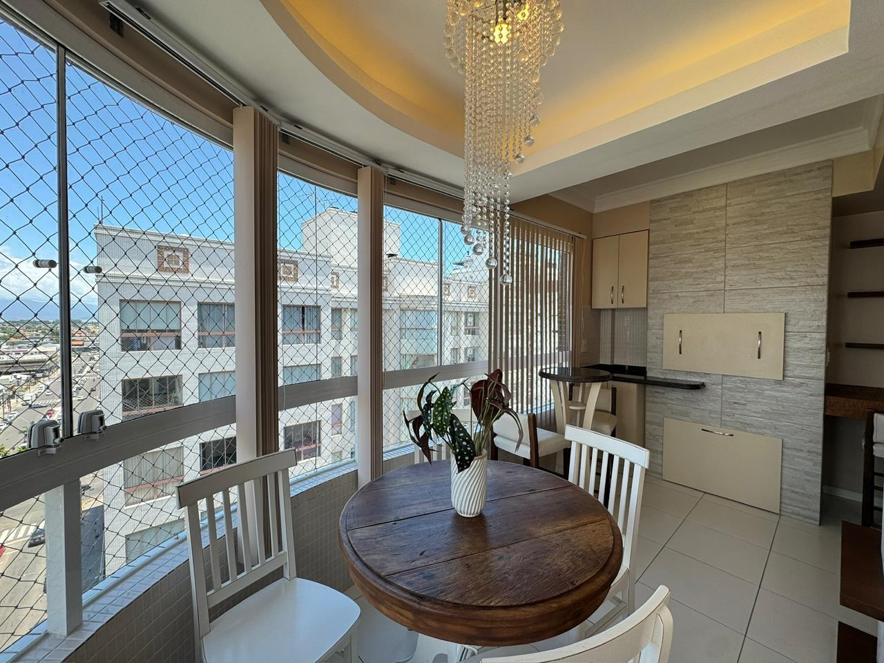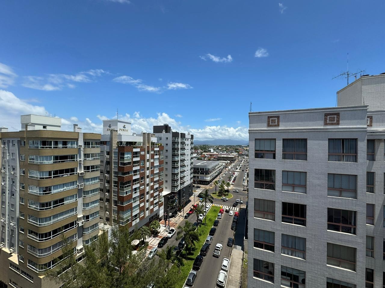 Vista da cidade! Apartamento de esquina em andar alto com linda vista da serra e mar, distribuído em 2 dormitórios, suíte, banheiro social, sala de esta e jantar, sacada de esquina integrada com churrasqueira, cozinha americana, área de serviço, apto bem iluminado e ventilado, box de para carro. Edifício de esquina de fino acabamento com hall de entrada decorado, elevador digital, portão e porteiro eletrônico, zeladoria permanente.