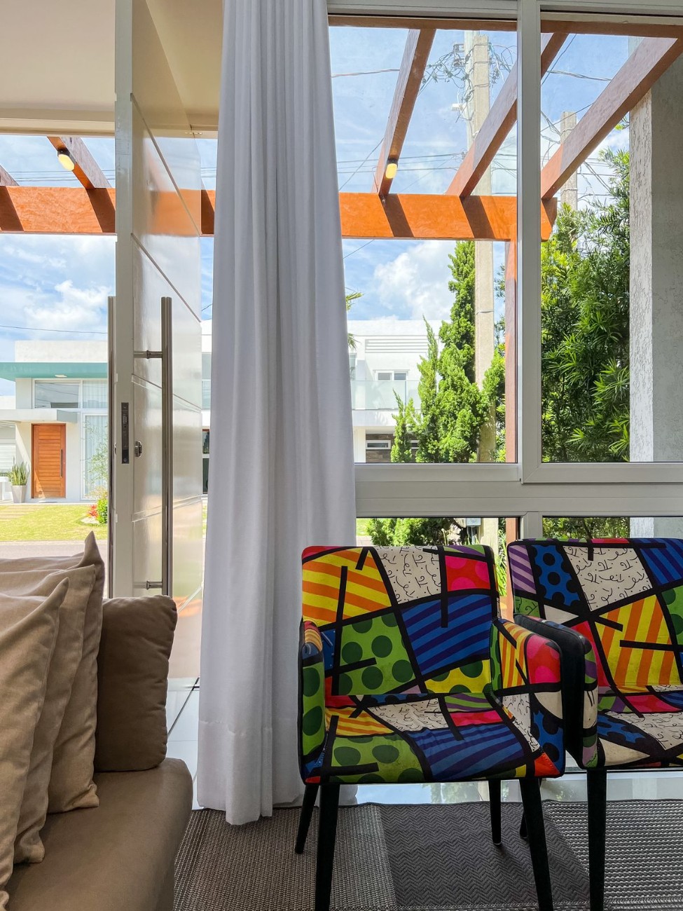 Casa térrea e mobiliada no condomínio Las Palmas em Xangri-lá. Possui 03 suítes com split, amplo living 02 ambientes com lareira e pé direito alto, cozinha americana com churrasqueira, ampla lavanderia, vaga para 02 carro, aberturas de PVC, acabamentos em granito, água quente, pátio com espaço para piscina, deck com churrasqueira nos fundos, paisagismo.