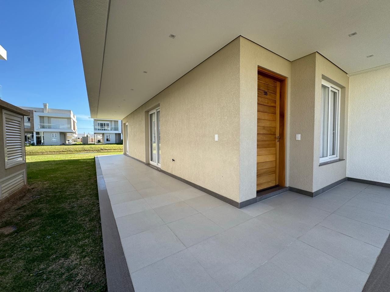 Casa totalmente mobiliada e decorada, entregue com mobília fixa sob medida de primeira linha, camas box com colchões de mola, móveis soltos selecionados, malha completa de iluminação, papéis de parede aplicados, cortinas, tapete central, além de eletrodomésticos como quatro televisores, cinco condicionadores de ar tipo split, refrigerador de duas portas, cooktop, forno elétrico, micro-ondas, lavadora de roupas e aquecedor de água individual. Os banheiros contam com boxes instalados, torneiras e chuveiros de qualidade superior, pressurizador e enxoval completo, reforçando o padrão elevado de entrega. Trata-se de uma residência cem por cento mobiliada e decorada. A planta oferece três dormitórios, sendo um deles suíte, todos com sacada no pavimento superior. As bancadas são executadas em granito na cozinha e lavanderia e em mármore nos banheiros, enquanto a iluminação em LED está presente nas cabeceiras das camas, nos banheiros, lavabo e cozinha. A área privativa possui cento e quarenta e oito metros e trinta e cinco decímetros quadrados, distribuídos em ambientes amplos e bem planejados. A casa apresenta cozinha americana integrada, churrasqueira, lavanderia fechada com porta externa em vidro, ampla varanda voltada para o leste, persianas automatizadas com motor, telas mosquiteiras nos dormitórios e bancada de home office no hall superior. O imóvel é indicado para clientes exigentes que buscam uma residência pronta, em um local tranquilo, com lago nos fundos e excelente orientação solar. O condomínio oferece infraestrutura completa, com praia particular de areia branca, água cristalina e beach club à beira-mar, complementando o conceito de bem-estar e lazer. A documentação está regularizada, possibilitando financiamento bancário conforme necessidade do comprador.