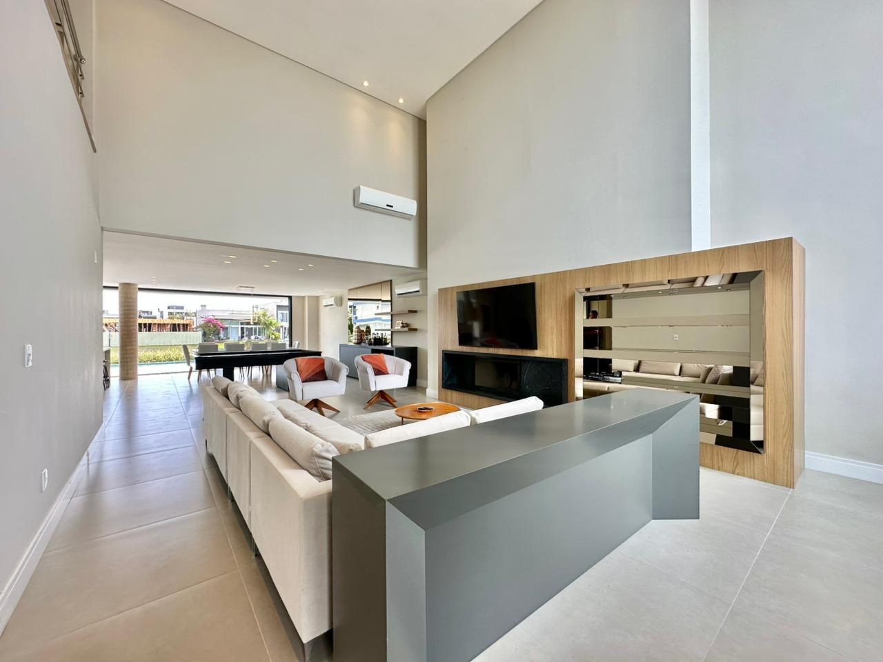 Sobrado à beira do lago principal no Capão Ilhas Resort, com orientação solar norte e uma planta que privilegia amplitude, luz natural e integração. O living em três ambientes conecta-se à cozinha equipada e ao lavabo, enquanto a área de serviço mantém independência e praticidade. O imóvel permanece mobiliado e decorado, com quatro dormitórios, sendo duas suítes, além de banheiro social. A suíte principal conta com banheira de hidromassagem voltada para o lago, criando um espaço de descanso com vista permanente para a água. A área externa oferece piscina de concreto, espaço de convivência junto ao deck e uma relação direta com o cenário natural do condomínio. São 357 m² privativos, garagem para dois carros e automação instalada, reforçando conforto e funcionalidade. Localizado em Capão da Canoa, no condomínio Capão Ilhas Resort, o imóvel permite negociação flexível: ato de R$ 1.500.000, 00, parcelamento direto em até 60 vezes, possibilidade de imóvel de menor valor e financiamento bancário. Agendamentos ou informações adicionais estão disponíveis mediante solicitação.