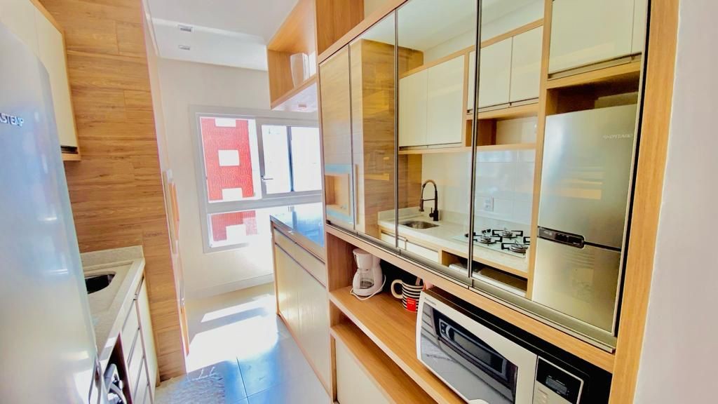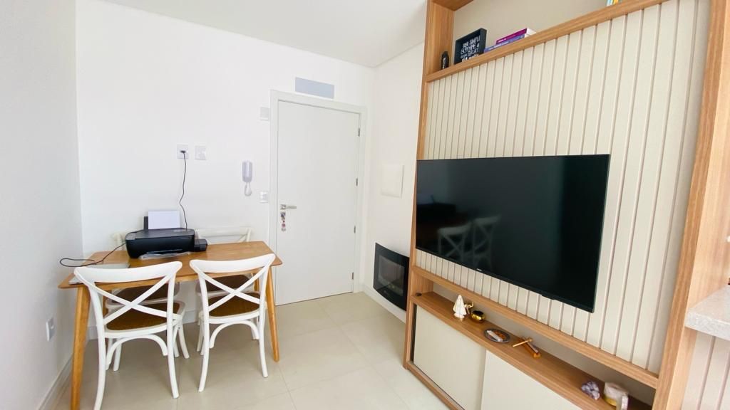 Apartamento 1 dormitório, de frente, vista liberada, living integrado em dois ambientes de jantar e estar, cozinha, área de serviço, vaga de garagem. Edifício100% revestido em cerâmicas, hall de entrada com detalhes em porcelanato e gesso, elevador digital, corredores com sensores por presença, porteiro com senha individual, garagem com porteiro eletrônico, tubulação para água quente e gás central, espera para ar condicionado split, zeladoria permanente