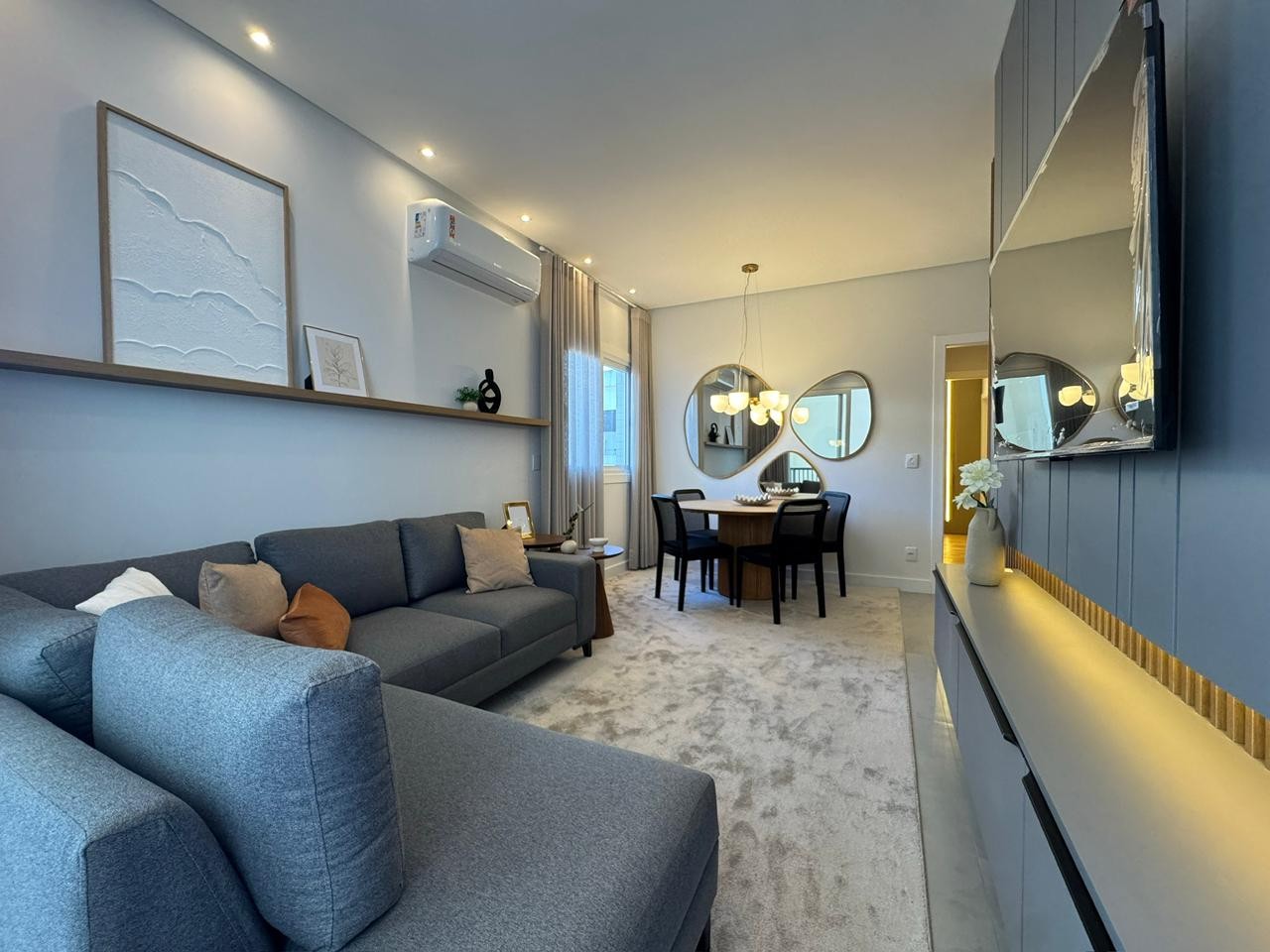 Apartamento projetado meticulosamente para atender ás demandas mais exigente dos proprietários. Apresenta espaços amplos arejados, com layouts inteligentes que maximizam o conforto e a funcionalidade. Composto por dois dormitórios, sendo um suíte, lavabo e banheiro social, cozinha conceito aberto e área de serviço separada, sacada aberta de frente, com vista liberada para serra, finamente mobiliado e decorado pela construtora. Com box de garagem de fácil acesso. Além disso, a infraestrutura completa, que oferece comodidades de classe, para garantir que os moradores desfrutem de um estilo de vida exclusivo.