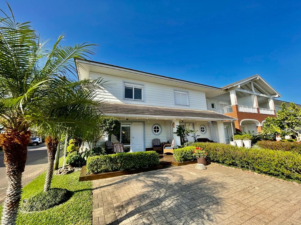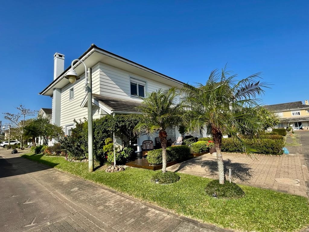 Casa em condomínio frente para o lago e avenida, composta por 4 dormitórios de esquina, suíte, banho social, lavabo, living em 2 ambientes, cozinha americana, churrasqueira, área de serviço, casa mobiliada e decorada, espaço para 2 carros.